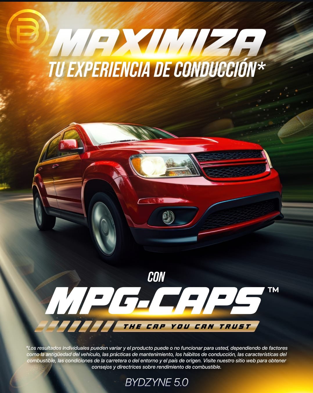 Aprovecha cada tanque con MPG-CAPS: cápsulas 100% activas que optimizan la combustión para mejorar la eficiencia del combustible, potenciar el rendimiento y ayudar a reducir humo y emisiones en motores gasolina y diésel. Resultados individuales pueden variar.